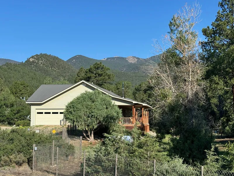 Custom 2009 approximately 2,321 sq ft (1,880 sq ft heated), 3 bedroom, 2 bathroom home on 1.85 +/- deeded acres. 21 ft X 21ft(441 sf ft) attached garage. Large rear covered deck with recessed lighting and easy access to landscaped and dog fenced rear yard, with views and close proximity to the Cimarron River. Property is off blacktop and has gate leading to Cimarron river within the highway right of way (The two pictures of the Cimarron River are taken from the highway right of way). High quality finished property with large open plan living area and huge picture windows off the living/dining/kitchen area to the rear covered porch. Many special touches and features throughout including propane powered generator to safeguard your comfort if there is a power outage. Drive in and unload in the attached garage with easy access to the house interior. The home comes furnished and would be a turn key property for this ski season. Excellent well with osmosis system. Property is five minutes drive from The Cimarron Canyon State Park, known for it's excellent trout fishing with both habitat enhanced waters and stocked lakes. Angel Fire, Red River and Taos ski resorts are all within 30 minutes to 1 hour 15 minutes drive away. Property is at approximately 7,460 elevation, which makes for a longer growing season and more year round enjoyment with springtime coming a little earlier and Fall lasting a little longer compared to the higher elevations. The trees are exceptional and the outside living space with the elevated covered porch heightens that experience, with the Cimarron River babbling in the background audible in the evenings with an open screened window as you fall asleep. This is the one you have been waiting for. The legal description for the property is Lot 1, River Point Subdivision. There are restrictions of record. Legal description overlaps into Highway Right of Way.