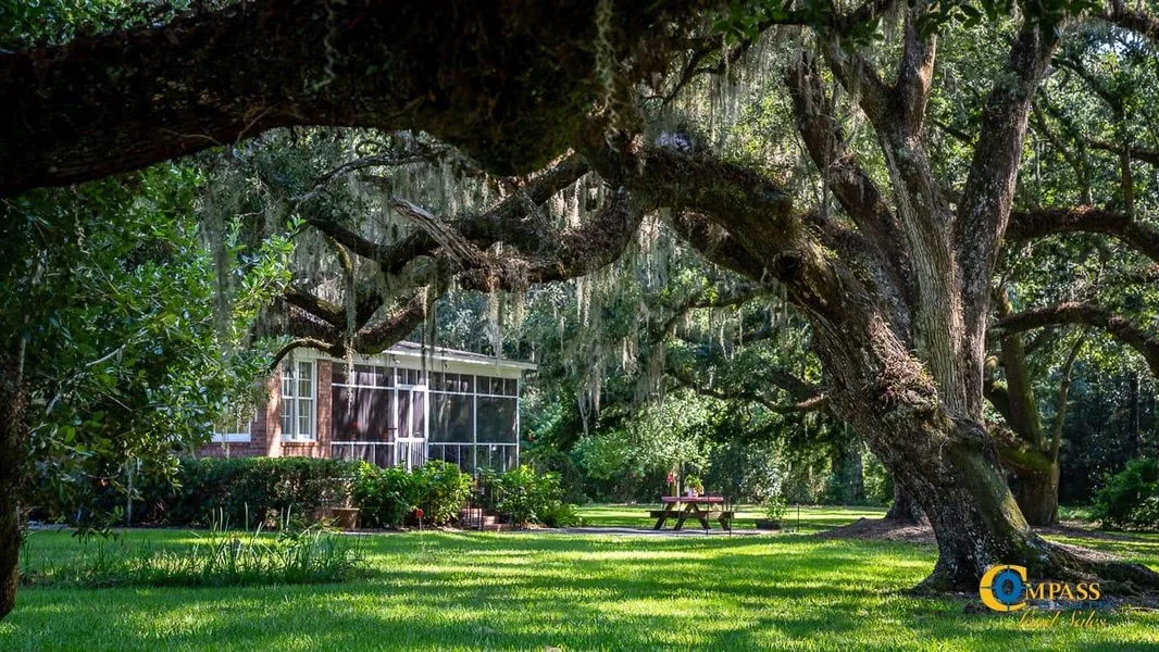 Built in 1992, the Georgian-style main house boasts an open floor plan, high ceilings, beautiful wood floors, and fireplaces. The kitchen features top-of-the-line Viking and Sub Zero appliances. Renovated slave quarters serve as a two-bedroom, one-bathroom guest house. Majestic live oaks surround both houses and create a picturesque scene. The grounds also include a walk in stable, equipment shed, and multi-purpose building with a five-bay garage, office, and storage room.