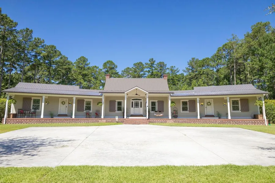 Beautifully sited within these 16.8 magnificent acres is an exquisite home secluded in its amenities and one of a kind Southern design. Within the middle of the home is a touch of history. Current owners moved an early 1900's home that was located on the front of the property and continued to build around it making it one of kind and unique. Of this stunning structure, you will find well thought-out custom living spaces that are both classic and functional, including the heart pine walls and floors throughout the home. There is an entrance from each wing giving all 3 masters suites the ability to enjoy the porch while looking over the fully stocked pond. There are endless opportunities for outdoor activities within the grounds a well-designed professional tennis court, fishing,