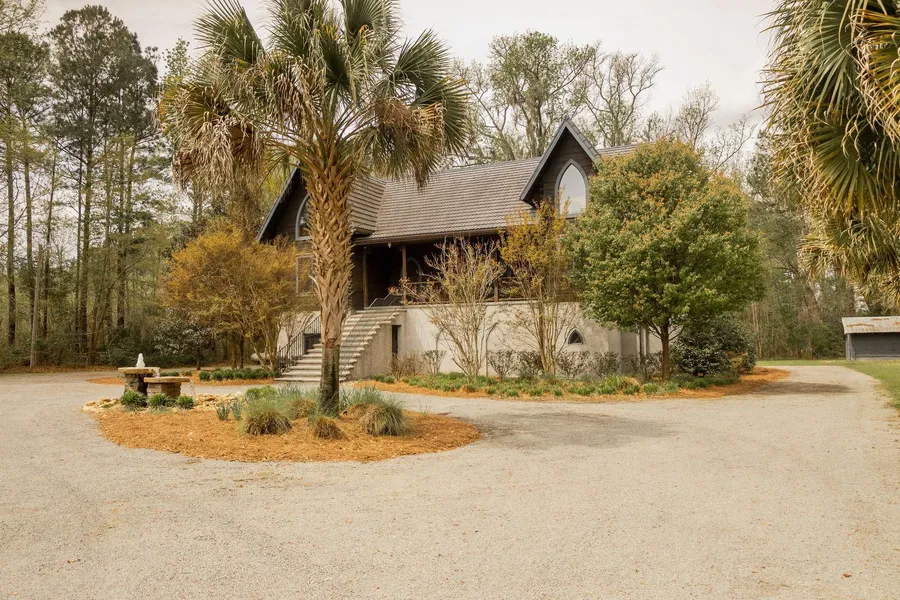 Welcome to the privacy and tranquility of this one-of-a-kind, custom-built, tri-level estate! Located within Minutes of I-95 which conveniently places you between Savannah, G.A. and Columbia, S.C., making it an easy commute to the surrounding areas including Charleston, Beaufort, Edisto Beach, Hilton Head Island, etc.The 44-acre estate is ideal for those seeking total peace, seclusion, hunting, or a venue of any kind! The possibilities are endless! Beautiful palm trees line the sides of the gravel driveway leading the way to the main house, setting the scene for a truly spectacular experience while being surrounded by an assortment of fruit trees, waterfalls and garden beds. Timeless elegance greets visitors at the 1800s refurbished front door from England. The 4500-/+ sq. ft. home has