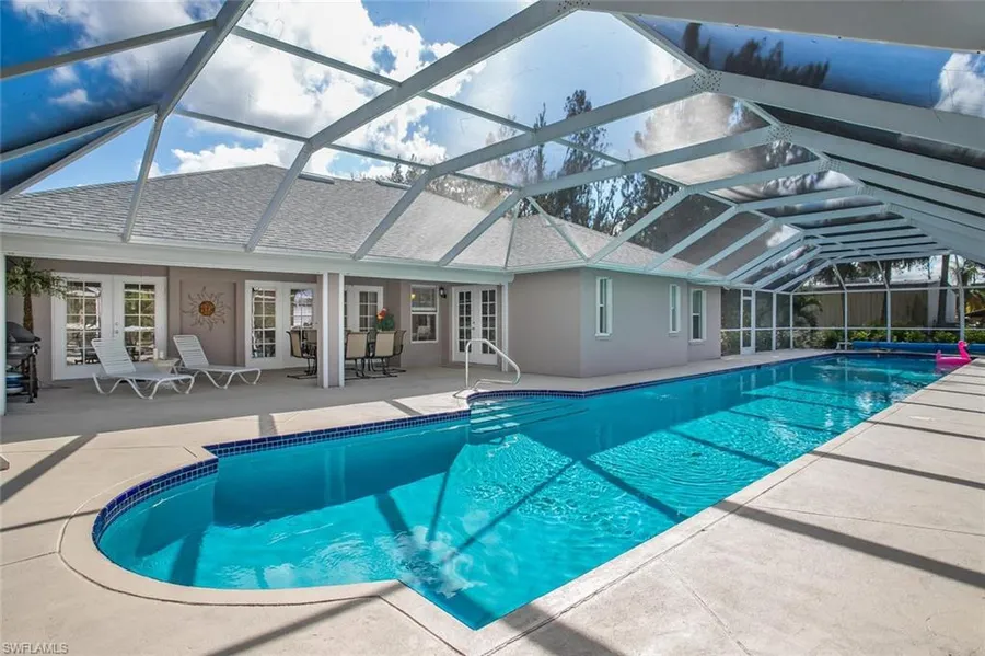 Spectacular Estates property very close in! This lovingly maintained 3 bedroom, 2 bath 2 car garage pool home sits on over 2 acres of land in the very desirable Southwest corner of Golden Gate Estates. Enormous 75 ft pool (almost competition length!) for all to enjoy. Home is fenced in with a new electric gate and is controlled wirelessly. Plenty of parking in the circular driveway, mature landscape and lots of shade. Sliders have been replaced with wood french doors leading out out to a spectacular pool area built for entertaining. Kitchen offers granite top, real wood cabinets, stainless steel appliances, pantry, and plenty of storage. All baths have matching granite tops. Bedrooms have newer carpeting and all new flooring throughout main spaces and wet areas. Master bath has dual sinks, his and her walk in closets, soaking tub and walk-in shower. Garage is oversized. New hurricane shu...