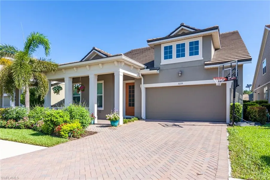 This popular and impressively UPGRADED "Banyan" plan is situated on a Long lot with a stunning Lakeview. Not only has the home been tastefully decorated but includes Smart home features of automated lighting, thermostat, & Safety Alarms. Featuring 4 bedrooms + Den, 3.5 bathrooms, plus a huge upstairs Bonus Room and 2 car garage! First Floor Master, low association fees! Conveniently located off Collier Blvd. Compass gives you a central location to all major amenities Naples has to offer Mercato, Waterside and Gulf Beaches. This Unique Banyan boasts high wood plank tray Ceilings, and Shiplap Accent wall in Great Room. Matching Custom built Sliding Barn Door. front porch, and an upstairs bonus room overlooking the lake. Finished 2nd Floor Bayan Rare Upgrade only found on a couple units in community. Beautifully appointed with amazing UPGRADES including: gourmet kitchen with High Efficiency Induction Range, and Chef Grade Appliances. Upgraded Lighting, fixtures, and Window treatments. Built in double ovens, Upgraded granite, Jumbo Island, 42 inch cabinets, and 5 1/4 inch baseboards throughout the home. The exterior features landscaped home site with option to build pool if desired.