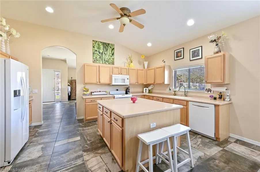 Check out this immaculate 4 bedroom residence located on a large corner lot in a family-friendly community! Some of the great features of the home include beautiful tile floors throughout. Built in 2006, the home boasts a new roof in 2019, hot water heater 2018, refrigerator 2018, washer & dryer 2017 and dishwasher 2018! The kitchen is a cook's dream with lots of counter space & storage and a center island. The master suite has a huge walk-in closet, and the en suite bath offers double sinks, a separate tub & shower, and private water closet. A wonderful glassed-in lanai has built-ins and a TV, creating another fabulous living space. The amenities of the Orange Blossom Ranch community include a huge clubhouse, two pools, a play area, basketball, volleyball, bocce ball and an exercise room. Look at the aerials to get a bird's eye view! Close to great schools! Low HOA fees! Pet friendly!