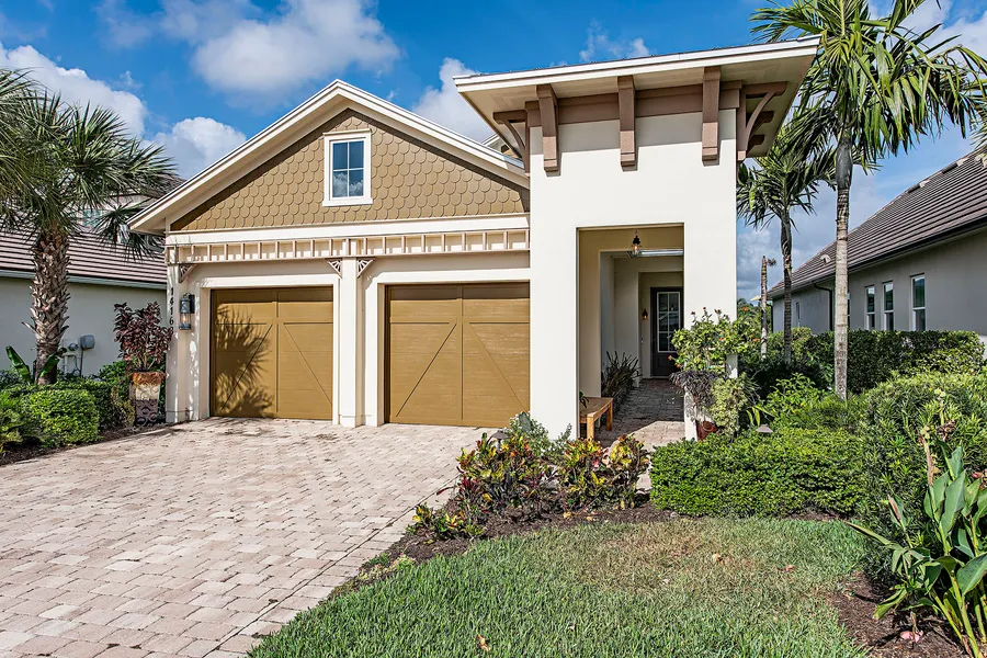 Former Ashton Woods model home with extraordinary upgrades throughout and one of the best lake views in the Community. Private and peaceful, delightful decor with soft grey and pastels. Frosted glass accents, charming stairwell and lovely view from both up and downstairs. Perfect Coastal feel with shiplap wall treatment, travertine and polished plank tile flooring. Upstairs loft with two bedrooms. Master on main level with exceptional master bath. Additional cabinetry built throughout, along with professional closet systems. A wonderful kitchen with upgraded European cabinetry at ceiling height and quartz countertops. Stainless appliances and subway tile backsplash. This remarkable and beautiful home is walking distance to the spectacular Club and Fitness Center. Other amenities include Tennis, Pickleball, Dog Parks, Canoe lakes and much more. Minutes from both Old Naples and Marco Islan...