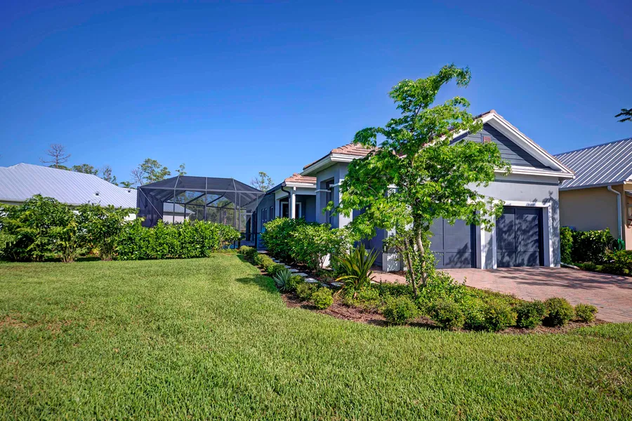 This lovely home is situated on a large pie-shaped lot with ample room for additional trees, plants and privacy. The custom deck with beautiful pavers includes a 30-foot pool with waterfall accent, festive lighting and bubbler. French door access to the pool from a charming great room, living and dining area with 10-foot ceilings, gorgeous tall windows and 8-foot doors. The kitchen has quartz countertops, stainless steel appliances and a huge eat-in island. Another set of French doors open to the den. Extra-large walk-in closet and elegant bath enhance the appeal of the master suite with its lovely open view to the garden beyond. Two-car garage and mid-street on the cul-de-sac. Naples Reserve is one of the newest Southwest Florida-planned communities offering the casual lifestyle second to none. 22 lakes, 688 acres bordered by the Picayune Strand State Forest, promising a private and natural sanctuary for all residents. Amenity-rich and full of activities for the whole family. The coastal setting of this new community is welcoming and desirable, especially when viewed from the exceptional community clubhouse and pool area.