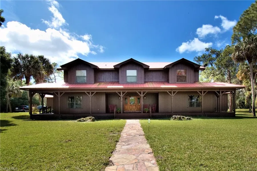 This incredible Country Estate is all you could ask for 24 +- beautiful acres of Florida at it's best. Just minutes from Ava Maria, Publix and restaurants. Only 35 minutes to Naples. This unique property has 5 bedrooms 5 1/2 baths with a master bedroom anyone would just fall in love with. It has 2 large walk in closets in the master and a soaking tub overlooking the beautiful grounds. 4 bedrooms upstairs, one with a jack and Jill bath. A large loft overlooking the downstairs living room and custom fireplace. A large game room just off of the living area. Sit on your front porch and enjoy wildlife roaming the estate. A Large pond with native vegetation and wildlife. Beautiful oaks throughout the property surrounds this beautiful country estate. A 2400 sq ft 3 bay steel building for all of your toys and more. French doors lead to the pool area with a 14x40 pool and a large entertaining are...