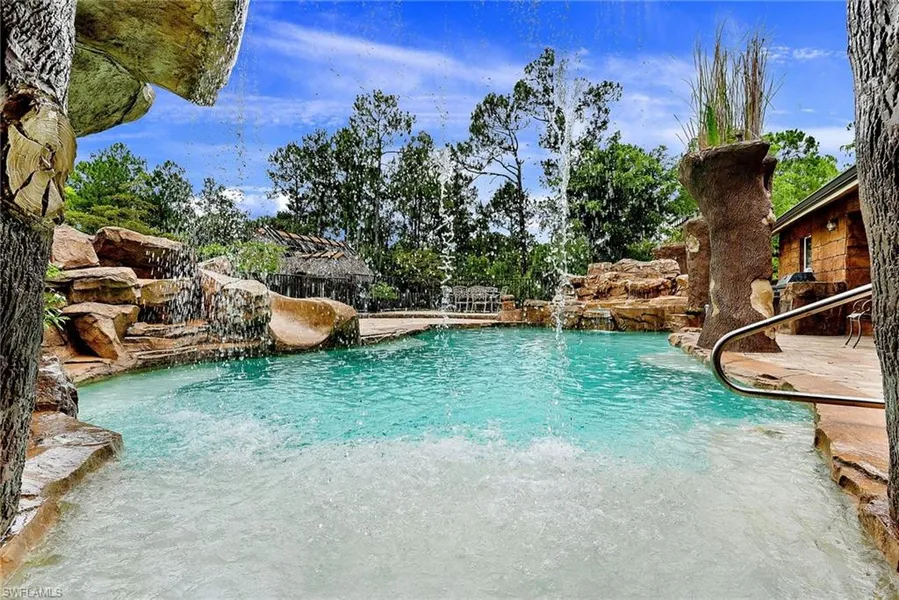 This stunning, GATED, remodeled ($300,000+/-)(2005) ESTATE HOME: BIG PRICE REDUCTION! 5 bedroom, 2 bath, pool, RV storage has it all! Soaring volume 14' ceilings, big open plan, with designer column room dividers, all crown molding accents, all tile floors in living areas, and wood floors in master and guest. Beautiful "chef's kitchen" with all wood shaker cabinetry, level 5 granite countertops and all top-line stainless steel appliances. All wood cased windows with designer window treatments throughout the whole house. Huge master bedroom with his and hers walk-in closets, dual granite sinks, wood vanities, soaking tub and walk-in glass with floor-to-ceiling tile finish. An incredible custom "stone" pool and spa with all paved lanai and pool deck. A "relax and meditate" stone grotto (for keeping cool with outdoor TV). A summer kitchen, unique stone waterfall and grotto, which really mus...