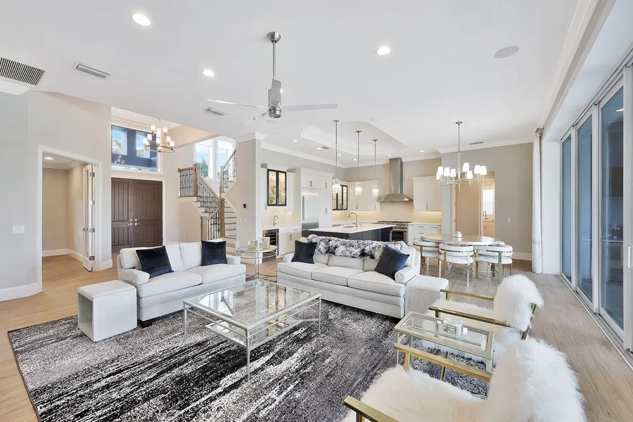 Look no further! Contemporary Water Direct 4 bedroom plus den, 4 bathroom custom home built in 2019. The property features a private dock with boat and jet ski lifts, giving you the freedom to explore the open waters whenever your heart desires. On entry to the property you will appreciate the open floor plan offering a contemporary great room with upgraded quartz countertops, Thermador gas stove and a hidden walk- in pantry. The Impact pocket sliders create a seamless transition as the great room opens up to the inviting outdoor living area offering a private pool, spa and built in outdoor kitchen. The ground floor offers a master suite, den, guest bedroom & bathroom and a large laundry room. A beautiful staircase leads you upstairs to the first floor living area which opens onto an open patio which offers breathtaking views down the canal. Two guest bedrooms and two full bathrooms comp...