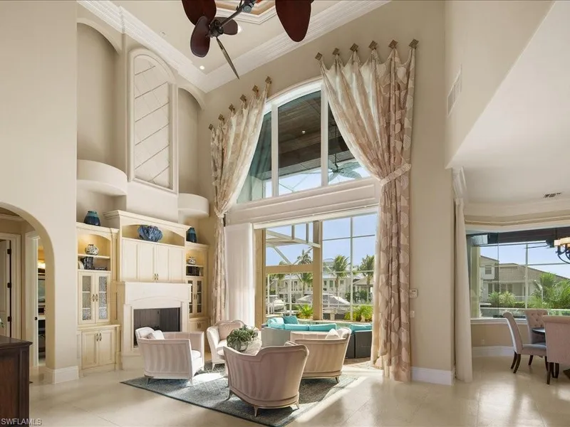 Magnificent multi-generational waterfront retreat with quick access to the Gulf one mile from Tigertail Beach. The spacious pool home has everything you'd expect in a luxury estate. The massive, imported designer front door is a preview to soaring 21' ceilings and southern exposure from the screened lanai, pool, spa, & dual docks with boat/jet ski lifts on over 1500 sqft of dock space. Gourmet kitchen features a six-burner Jenn Air gas cooktop with pot-filler and built-ins. For the Wine enthusiast, there is a private wine room and 2 temp-controlled fridges. Private large elevator. Primary suite offers an inviting sitting area with direct access to the spa, a seamless indoor-outdoor experience. Spacious en suite bathroom designed for your relaxation with a generous jetted tub, convenient walk-through shower, vanity, and private water closet. Truly a private oasis for your comfort and enjoyment. Other highlights include the flexibility of dual home offices, an entertainment loft with wet bar that serves the four upstairs bedrooms and bathrooms. The third level has two observation decks with views of Collier Bay and Marco Island. This luxury home is being offered fully furnished.