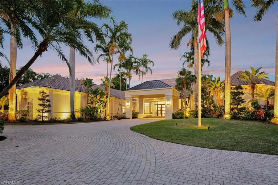 Come escape into this fully developed 2 acre Eastern exposure compound in Pine Ridge estates. With over 10,000 sq. feet under air and almost 20,000 sq feet of additional exterior living space, this home is the epitome of the Naples lifestyle. The gracious glass front doors open to a grand foyer setting the tone of luxury and casual elegance. Once you pass the open dining room which seats 12 comfortably and the wood burning fireplace, you enter the great room that includes a well appointed chefs kitchen with Wolf and Viking appliances along with a separate breakfast room and fully equipped bar area. The Primary suite which comprises one entire wing of the home includes glass doors that pocket open onto the courtyard pool area, his and hers closets, a spectacular primary bath with soaking tub, separate shower, outdoor shower, garden area with spa and a home office/den. The property with it...