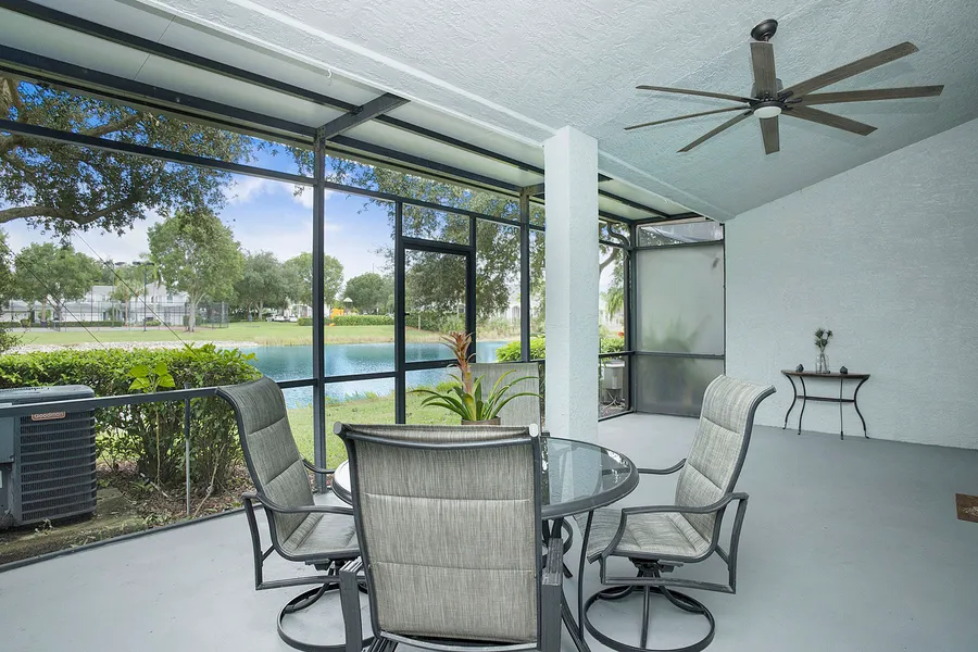 Welcome to this beautifully maintained townhome, offering a balance of comfort, style and convenience. Boasting serene lake views from its extended screened-in lanai, this home provides an ideal space for morning coffee or evening relaxation. The kitchen is spacious and functional, featuring white cabinetry, a pantry and a breakfast bar that opens to a generous dining area with French doors leading to the lanai. Plantation shutters throughout the home add a touch of sophistication. Tile flooring runs throughout the downstairs, while luxury vinyl flooring enhances the stairs and all rooms upstairs. Upstairs, the owner's suite impresses with coffered ceilings, a walk-in closet and a large en-suite bath, complete with dual sinks, a soaking tub and a beautifully updated shower with frameless glass. Two additional bedrooms and a full guest bath provide ample space for family and guests. The h...