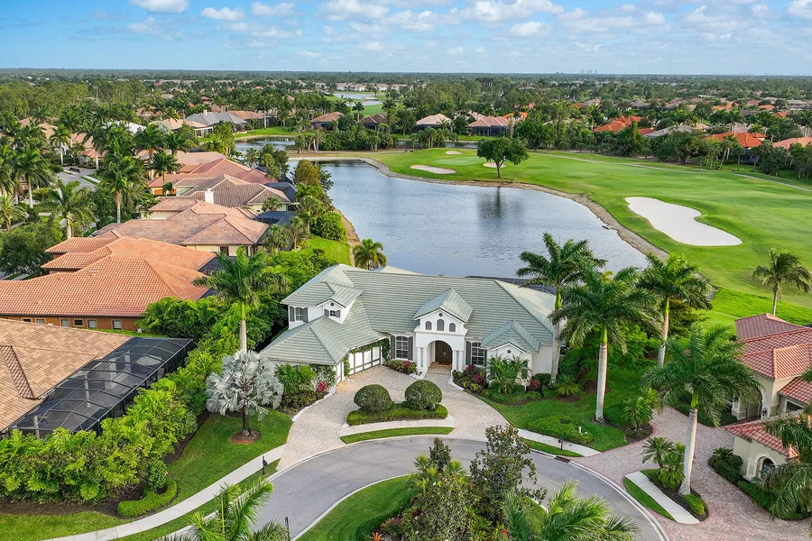 Discover the epitome of luxury in this stunning custom-built estate by Lundstrom Homes, set on an expansive half-acre lot in one of Lely Resort's most exclusive, guard-gated communities, Classics Plantation Estates. This four-bedroom-plus-den, 4.5-bath residence offers a blend of elegance and functionality, with impeccable design and finishes throughout. In a serene, traffic-free cul-de-sac, the home enjoys sweeping southwest views of the lake and the 13th fairway, all framed beautifully by a picture window pool cage. The expansive lanai, complete with over 1,150 square feet of covered outdoor living space, is an entertainer's paradise, featuring a luxurious infinity-edge pool, a rock-feature heated spa, and a 5,000-Btu outdoor fireplace. A spacious outdoor kitchen with a bar area makes this the ultimate setting for relaxation and social gatherings alike. Inside, the gourmet kitchen is a chef's dream, featuring high-end finishes and top-of-the-line appliances, including a Viking double oven with a cooktop, a new Sub-Zero refrigerator, a new dishwasher, granite countertops and gas cooking. Travertine marble floors flow seamlessly from the interiors to the lanai, enhancing the indoor-outdoor living experience. Beyond the home, residents enjoy exclusive access to the Players Club & Spa, offering a full suite of social and sporting activities, including tennis, bocce, pickleball and resort-style pools, along with fine dining options. Plus, with three championship 18-hole golf courses within Lely Resort, this home presents a rare opportunity to experience resort-style living in one of Naples' most prestigious communities.