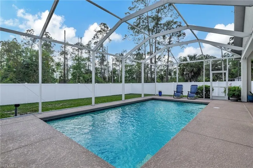 Magnificent One-of-a-Kind 3 Bedroom, 2 Bath Home on 1.58 Acres with 7' Deep Heated Pool. This stunning, meticulously designed home is truly exceptional in every way. Nestled on 1.58 acres of beautifully maintained property, this home boasts top-tier materials, unmatched craftsmanship, and an array of luxury features that make it a rare find. Whether you're looking for the perfect family home, a space to entertain, or a private retreat, this property offers it all. Key Features: Great Room Floor Plan: Open and inviting, designed to flow seamlessly from the chef s kitchen to the dining area and living spaces, with breathtaking views of the pool and lanai. Chef's Gourmet Kitchen: Equipped with a 6-burner, 2-oven industrial gas stove with a vented hood, pot filler, custom cabinetry, a 10x6 island with cabinet storage, ice maker, farm sink, and a pantry with charming barn doors ideal for culinary enthusiasts. Outdoor Oasis: The screened lanai with a large heated pool, sunbathing deck, and built-in cement bar offer the perfect space for relaxation and entertainment. Enjoy a view of the expansive backyard, complete with a 6' high fenced-in section, ideal for children and pets. Luxurious Primary Suite: Spacious and private, with a tray ceiling, custom lighting, a gorgeous en suite bathroom featuring dual sinks, a separate shower, and a Jacuzzi tub with mood lighting. A large custom walk-in closet with bins/baskets and a linen closet completes the suite. Privacy & Comfort: The home features a split bedroom floor plan for maximum privacy, with impact windows and doors, plantation shutters, tile flooring throughout, high-end lighting, and Hunter Douglas fans. Exceptional Amenities: Reverse osmosis water system, maintenance-free metal roof, a 2-car garage with built-in tool/work area, and a spacious laundry room. Room to Grow: The expansive 1.58-acre property offers plenty of space for a guest house, a barn, or storage for all your toys. Horses and other animals are welcome! Offered Partially Furnished: Impeccably maintained and ready for you to move in. This home is a perfect blend of luxury, functionality, and style. If you're seeking a private, high-end retreat with all the features you desire, this property is a must-see. Schedule your private tour today and experience the epitome of comfortable, elegant living!
