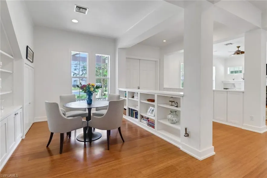 Situated between Waterside shops and Mercato in the center of a one block street in the premier neighborhood of Pine Ridge Estates this 1.21 acre property gives you central access to all the area has to offer. Boasting 6 bedrooms, 2 dens, 4 and a half baths, and over 5,800 square feet of living space with multiple common areas. The expansive porches welcome you from ample driveways. The main floor, with plenty of natural light, is ideal for entertaining with a massive island in the chef's kitchen that naturally gathers friends and family. French doors connect the interior space with the large covered screened lanai that overlooks your saltwater pool and spa. A fully fenced back yard is the perfect space for kids or pets. This home was built with incredible storage and a finished 3rd floor to be enhanced by you as added personal space.