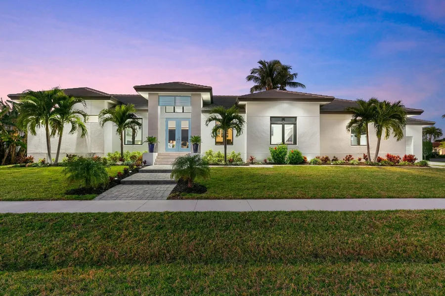 Welcome to your dream oasis in the heart of Marco Island. This stunning waterfront retreat, is a 3-bedroom, 3-full bath with den and office, and has roughly 2500 sq. ft. of luxurious living space that is perfectly blending modern elegance with coastal charm. Upon entering, you'll be greeted by an open-concept floor plan bathed in natural light, showcasing volume ceilings, electric fireplace with heating feature, and stylish recessed lighting. The gourmet kitchen is a chef's delight, featuring sleek quartz countertops, top-of-the-line Cafe appliances, Thermador espresso maker, and a spacious island perfect for entertaining family and friends. Step outside to your private outdoor paradise, complete with a sparkling 14X28' pool with hot tub and sun shelf. Plenty of space for sunbathing, or hosting BBQ's at the outdoor kitchen with Napoleon grill, ice maker and beverage cooler. Enjoy serene ...
