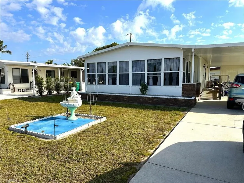 Discover the joys of homeownership with low HOA fees at West Wind Estates in South Naples. This highly desirable 55+ community offers a wealth of amenities, including a sparkling community pool, hot tub, grill area, clubhouse, fitness center, pickleball, shuffleboard, tennis courts, and boat storage. Pet lovers will appreciate the community's welcoming atmosphere, and its prime location provides easy access to Marco Island and all the attractions Naples has to offer. This 1983 manufactured home is bright and spacious with 2-bedrooms, 2-baths and features a large eat-in kitchen, a cozy front room, an indoor laundry area, a generous screened-in patio, a covered carport, and additional storage in a shed.