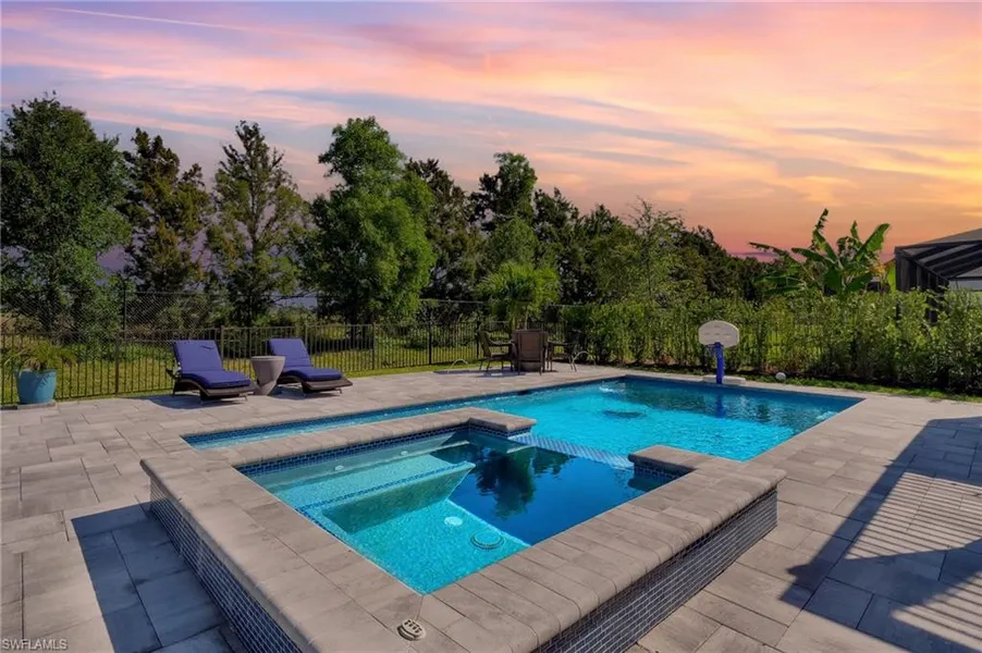 Attention Families!!!! Welcome to one of the largest and most upgraded homes currently on the market in the coveted Orange Blossom Ranch community. This beautifully designed 5-bedroom, 3.5-bathroom residence offers an open-concept floor plan with upgraded tile flooring and elegant crown molding, creating a sophisticated yet inviting atmosphere. The living room features a custom electric fireplace, adding warmth and charm, while the kitchen and dining areas flow seamlessly, making this home ideal for gatherings of all sizes. A whole-house water softening and filtration system ensures premium water quality throughout the home. The first-floor private guest suite offers a peaceful retreat for family or visitors, while the separate office with its own entrance is perfect for those who work from home or need a quiet, dedicated workspace. Upstairs, the master suite provides a serene escape with ample space and natural light, while the additional bedrooms are spacious and versatile. Step outside to your own private oasis, where a stunning custom in-ground heated saltwater pool awaits. Designed for both relaxation and entertainment, this backyard features high-pressure jets in the oversized spa, LED pool lighting that creates a breathtaking nighttime ambiance, and a pergola with adjustable louvers for customized sun and shade control. Additionally, the deck has been built with a footer for an optional pool cage installation, offering future flexibility to the new homeowner. Located in an A-rated school zone, this home is perfect for families looking for an exceptional living experience. The Orange Blossom Ranch community offers an array of resort-style amenities with an incredibly low HOA, including a fishing pier, bocce ball, a state-of-the-art fitness center, a playground, two resort-style pools, a spa, pickleball, and tennis courts. With endless upgrades, modern elegance, and an unbeatable location, this home is a rare opportunity that won't last long. Schedule your private showing today!