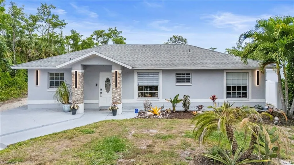 Beautifully updated and move-in ready, this 3 bedroom, 4.5 bathroom home is perfectly situated on 1.14 acres in the desirable Golden Gate Estates neighborhood of Naples. Enjoy the best of both worlds with privacy, peace, and tranquility, while still being just minutes from Naples' renowned beaches, shopping, and dining. Each bedroom features its own private bathroom, offering comfort and convenience for family or guests. The bright, open-concept kitchen is outfitted with granite countertops, white cabinetry, and a sleek tile backsplash. With 1,964 square feet of living space, this home offers a spacious layout including a living room, family room, and formal dining room. Double French doors from the dining room lead to an oversized screened lanai and pool, perfect for entertaining or relaxing in your own backyard retreat - bask in the Florida sun by your oversized pool, lounge in the poolside hammocks, or enjoy grilling out under the beautiful pergola. The front and back yards are beautifully landscaped and fenced, providing plenty of space for pets or children to play. Set well back from the road down a long driveway, there's ample room for parking and guest entertainment. Additional highlights include abundant storage throughout the whole home, a newer AC system installed in 2020, a new well pump with most components updated and reverse osmosis system, and 2018 roof. This ultra-private oasis in Golden Gate Estates offers the ideal blend of modern updates, functional space, and serene living. Schedule a private showing today!