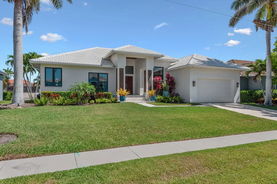 Are you searching for a beautifully renovated coastal retreat with tranquil water views, a saltwater pool, and quick Gulf boating access— just blocks to Marco Island's award-winning, white-sand beach≠ This nicely furnished four-bedroom, two-and-a-half-bath, two-car garage home was thoughtfully remodeled in 2021 and offers stylish, turnkey living in a prime location close to boutiques, theatre, restaurants, miniature golf, the beach and all popular island attractions. With impact-resistant doors and windows, a 2019 seawall ready for your customized dock and stunning water views throughout, this home is ideal for those seeking comfort, quality and convenience. The exterior offers a screened saltwater pool with a spacious deck, a large covered lanai with ceiling fan, and peaceful canal views, ideal for entertaining or unwinding in total privacy. Inside, vaulted ceilings and recessed LED lig...