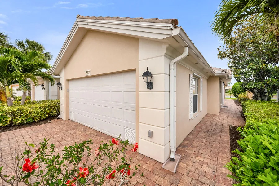 Lowest priced villa in Verona Walk, offering beautiful, tranquil lake views and exceptional value in one of Naples amenity-rich communities. This Divosta-built, attached Capri villa is offered fully furnished featuring two bedrooms, a den, two baths and a two-car garage in a thoughtfully designed split-bedroom layout. Peacefully positioned along the water and outside the flood zone, the home includes a screened lanai with ceiling fan, ideal for enjoying evening sunsets and serene lakefront living. Inside, vaulted ceilings and tile flooring in the main living areas enhance the open, airy ambiance, while new stain-resistant carpet in the bedrooms and dining area adds comfort. Recent improvements include a newer HVAC system and a 2021 water heater, as well as 2022 roof upgrades with metal flashing, boots and vents. The kitchen is finished with white shaker-style cabinetry, granite countertops, tile backsplash, recessed lighting and a window above the sink. Newer Maytag stainless steel appliances complete the look, including a range, microwave, refrigerator/freezer and dishwasher. The kitchen flows effortlessly into the main living room and adjacent den, which is styled as a formal dining area and features custom built-in cabinetry, shelving and mirrored accents. The owner's suite enjoys peaceful lake views and offers door access, dual sinks with a full-width mirror and a walk-in shower with a glass enclosure. A walk-in closet with custom built-ins adds functional elegance to the suite. The guest suite is tucked behind another set of doors and includes a spacious bedroom and adjacent bath with a shower-tub combo. A generous laundry room offers built-in cabinetry, a closet, a utility sink and a large privacy window, along with a washer and dryer. Verona Walk is known for its active, resort-style lifestyle with no additional membership fees. The gated community features 24/7 security, over 20 miles of scenic recreational and biking trails, lighted tennis, bocce and basketball courts, a children's playground, and a resort-style pool and lap pool. The town center includes a post office, full-service restaurant, ice cream parlor, gas station, car wash, hair salon, bank and a full calendar of events managed by an on-site activities director. Residents also enjoy a 24-hour fitness center, library, business center and card rooms. Conveniently near Naples and Marco Island's world-famous beaches, golf courses, shopping, dining and medical centers, this villa offers a low-maintenance lifestyle in a sought-after setting.