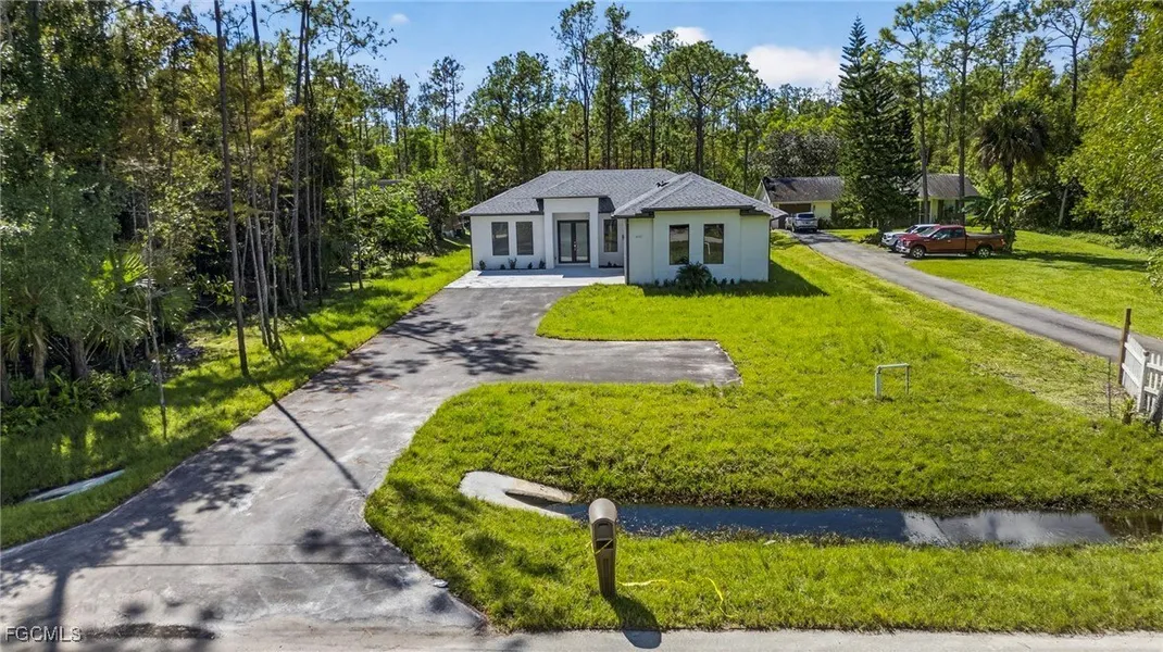 Move-In Ready. PRICE REDUCTION! Lovely 3 BEDROOM PLUS DEN, new construction. GREAT LOCATION! Just minutes from supermarkets, pizza parlor, nail salon, and more. This high quality, beautiful new-build showcases an open floor plan with great attention to details. A bright and airy main living space; light filled den; tile throughout; custom wood cabinets kitchen with quartz countertop, a waterfall island, and beautiful light colored backsplash; soaring high tray ceilings in the living room and master bedroom; 8-ft doors; impact windows and doors; automated sprinkler system; and asphalted driveway. Golden Gate Estates is the perfect combination of peaceful, rural setting, just a short driving distance from all the amazing amenities Naples has to offer.