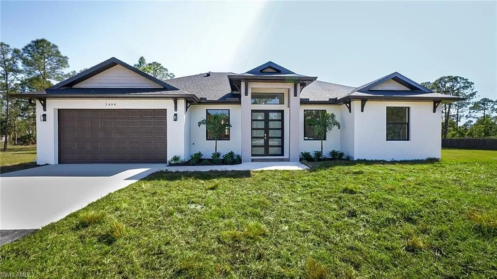 ********NEW PRICE REDUCTION FOR A QUICK SALE!!!******** NEW CONSTRUCTION 3+ DEN, 2 BATHS HOME ON 1.59 ACRES 100% UPLAND LOT. Beautiful farm style home with open floor plan and outdoor kitchen gives you the opportunity to enjoy with your guests and entertain in and out. Impact windows and upgraded trims, tile and wood work will catch your eye as soon as you walk in to this brand new home. Built in electric fire place adds a beautiful look to the living room. RO system and tankless water heater installed for the whole house. Plenty of space for pool or guest home. Big Corkscrew Island Regional Park is within a short drive for you to be entertained by. Park has aquatic complex, tennis and pickleball courts, athletic fields, fitness center, walking paths and much more. Beach is just a short 35 minute drive for you to enjoy. WASHER AND DRYER ARE NOT INCLUDED.