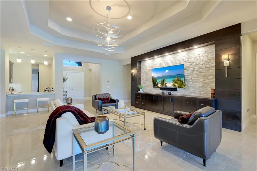 Welcome to the Highly Coveted Carlisle Model in StoneCreek. Experience modern Naples living in this sought-after Carlisle Model single-family home offering 3 bedrooms, an expansive den, 3.5 baths, and a 3-car garage. Designed for both comfort and entertaining, this residence blends thoughtful upgrades with effortless indoor-outdoor living. Inside, you'll find an open-concept kitchen with a large island, stainless steel appliances, a gas range, and a wet bar perfect for hosting and family gatherings. The primary suite features dual walk-in closets and a spa-like bathroom with dual vanities, a soaking tub, and a separate walk-in shower. Step outside to your own private oasis: an extended screened lanai with a summer kitchen and bar area, ideal for dining al fresco. Enjoy the heated pool and spa, surrounded by lush landscaping and tranquil water views that create a true sense of retreat. Lo...