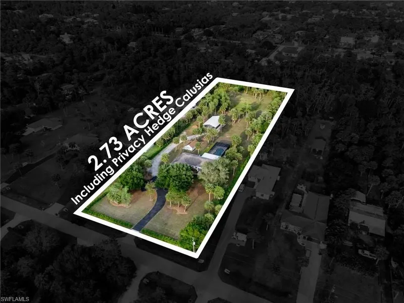 COMPLETE PRIVACY---Can't see into this OASIS! OVER $300K IN LUXURY UPGRADES! Tucked behind lush clusias on 2.73 acres of dry, cleared land, this property offers total privacy and peaceful country living just minutes from town. Every inch is pristine, from the freshly renovated interiors to the wide-open outdoor spaces designed for Florida living. Contractor-owned and rebuilt with care, this home shines with top-quality finishes and thoughtful design. Inside, you'll find an open, airy layout with plank tile flooring, a huge quartz island, premium appliances, and a spacious kitchen with abundant cabinetry, a walk-in pantry, and dual desk spaces for work or creativity. The 3-bedroom + den, 2-bath home includes a two-car epoxy-finished garage, and everything-AC, ducts, water heater, electrical, plumbing, and all interior elements-is brand new. The property blends solid, high-ground land with the modern upgrades of new construction. Two sets of double sliders lead to nearly 2,000 square feet of screened outdoor living space, complete with a sparkling pool and plenty of room to entertain. A private dirt road leads to a 50' x 30' covered storage area, perfect for a boat, RV, or future workshop. There's also a 14' x 25' two-level building that holds the pool equipment and full-home reverse osmosis system-already wired and plumbed for potential build-out. Need backup power? The underground gas tank is ready for a generator. All of this with no flood insurance required, and just minutes from downtown Naples, beaches, dining, shopping, and A-rated schools. Assumable VA loan with LOW 4 rate available to qualified buyers (lender/VA approval). It's that rare find-better than new, with privacy, craftsmanship, and the perfect balance between quiet country living and city convenience.