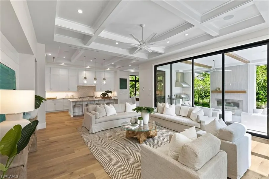 JUST REDUCED NEW CONSTRUCTION with Location just 2 blocks to Old Naples and around the corner from Coquina and Moorings!! PRICING CANT COMPARE!! WOW Factor on 7th Avenue North has arrived! This New Construction home is built to the finest standards and offers a new level of quality and attention to detail from Jerulle Builders! Known for taking “no short cuts” in the unseen part of their construction, the entire product matches the exterior beauty of their fine finishes and design. The exterior charm is timeless with the look and feel of downtown Naples, never to be labeled as dated but in Naples charming taste for a lifetime. Before reaching the front door, you hear the alluring waterfalls, see the blue tiled pool and feel the excitement this property offers! Enter into a refreshing vision of expansive wide plank wood floors and a view of the great room with distant view of the open kitchen and dining area. Everywhere you turn there is a vision of beauty drawing you to imagine yourself grilling in the covered Outdoor Living or lounging on the sunny pool deck. The kitchen features unique gorgeous Quartzite stone counters, top of the line Thermador appliances, gas cooking, double ovens, micro drawer and a spectacular hidden pantry. Volume ceilings give the appearance of large spaces and the dining room, surrounded by sunlit windows and landscapes, is no exception. The Great Room wall of glass opens wide to include outdoor cooking, cool evenings beside the fireplace, or sunbathing beside the sparkling blue pool. The large first floor laundry and powder bath lead to a tucked away Primary Bedroom featuring a spa bath with truly beautiful marble-look tile and two huge closets. Upstairs is something extraordinary! A sitting area atop the stairs, under a chic chandelier of note, leads to the study overlooking the 7th tree-lined avenue. Pass through the chic morning bar with frig, sink and wall of chic shelving to a second primary bedroom with vaulted ceiling and sunlit balcony over the pool. Two large additional bedrooms en suite, and second laundry make this home The One! Construcgtion Features include: All Concrete Block both floors, Perimeter waterproofed windows, doors and slabs; Drywall upgrades for sound and mold resistance; Sound resistant stairs; Lanai screens, hurricane shutters and more! This is a Smart Home with personalized ipad, control from remote locations, and all the bells and whistles you want. Add to all of that, this home is on 7th Avenue North, home of the Naples Beach Club (Four Seasons)! Walk or cart there for the upcoming Naples hot spot, or short blocks to the iconic downtown Naples for world class shops and dining!