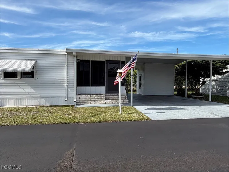 Beautiful 2-bedroom/2-bath home in an active 55-plus manufactured home community. Wood laminate flooring, fine appliances and a spacious lanai round out this like-new home. Fabulous 2-car wide driveway means no more moving cars around - a rarity in the community!! A separate spacious shed provides laundry and all of the storage you could ever need. Blue Sky's offers clubhouse activities, pool, spa, tennis, etc. Close to all that the Naples lifestyle has to offer: shopping, restaurants, entertainment, beaches, and health care facilities. No more than 2 persons in home and no more than one pet.