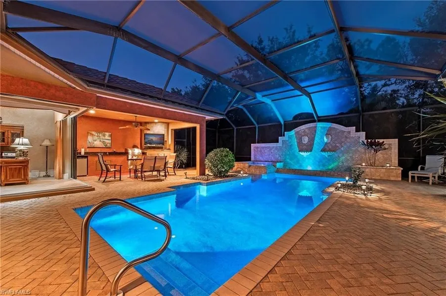 AVAILABLE FOR FEB 2026! Live the luxurious Naples Lifestyle at this grand estate home in the gated community of Briarwood. This former model home and Grand Venetian Floor plan features 4 bedrooms, 3 full baths, oversized saltwater swimming pool & spa, summer outdoor kitchen, BBQ Grill & fireplace. Sleep up to 8 people. House is on propane gas. Full kitchen and dry bar. Other Features: Home surround sound system, Free Wi-Fi, HD Cable, security system. Community Features: Guard Gated Security, Tennis, Lap Pool, Resort Pool, Clubhouse, Basketball, Volleyball, Pickleball, Playground and Sports Field. Less than 10 minutes from Naples Pier, Beach, 5th Avenue Restaurants, Shopping, and Marinas. Less than 5 minutes from grocery stores, I-75 and dining. We have beach chairs and other supplies for use.