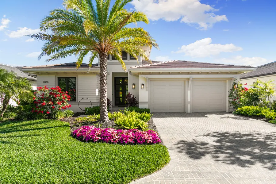 Exquisite home custom-built by award-winning London Bay Homes in secluded yet convenient Cambridge Park at Orange Blossom. This coastal contemporary, one-story smart home with great room floor plan and high ceilings has incorporated every imaginable upgrade including custom lighting, gorgeous Italian oak hardwood flooring, cozy fireplace, electronic shades, upgraded televisions with sound bars and surround sound, Wolf and Sub-Zero appliances, outdoor lanai and summer kitchen with outdoor television, upgraded Nassau pool with spillover spa, custom millwork, air-conditioned garage and whole-house generator. This one-story, low-maintenance home is offered with furnishings negotiable, ready to move right in and enjoy. Landscaping and pool maintenance are included in the reasonable HOA fees, enabling residents to enjoy the ease of condominium living with the privacy of a single-family home. J...