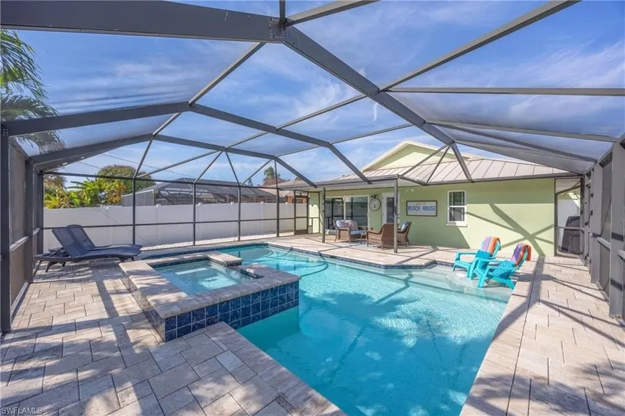 Welcome to your charming and cozy beach and pool retreat, an exceptional value that truly checks every box. Just one mile from white sand beaches, this spotless home is completely move in ready and sold turnkey furnished. Simply bring your toothbrush and start enjoying the Florida lifestyle from day one. Designed for casual living, the open floor plan of this 3 bedroom, 2 bath home flows effortlessly and is enhanced by beautiful custom trim work throughout, including crown moulding, built in shelves, and custom cabinetry that add warmth and character. Every detail has been lovingly maintained, making this home feel fresh, welcoming, and impeccably cared for. How about a twilight swim? The generous sized master bedroom enjoys easy access to the heated saltwater pool and spa. Unwind regardless of rain or shine under your covered lanai. Enjoy your morning coffee or cool beverage to the soothing sounds of the spa water feature. Or relax in the den while watching the flat screen TV. Peace of mind comes standard with this insurance friendly property. Located in an X flood zone so no flood insurance is required, the home also boasts impact resistant doors and windows along with the durability and safety of a metal roof. This combination offers comfort, peace of mind, and long term savings. Whether you are looking for a personal getaway, full time residence, or a high performing investment, this home delivers. Investors will appreciate the proven income history with recent annual revenues of $112,000. Relax by your private pool, head to the beach in minutes, or explore all that Naples has to offer knowing you made a smart and stylish choice. Agents please read confidential comments.