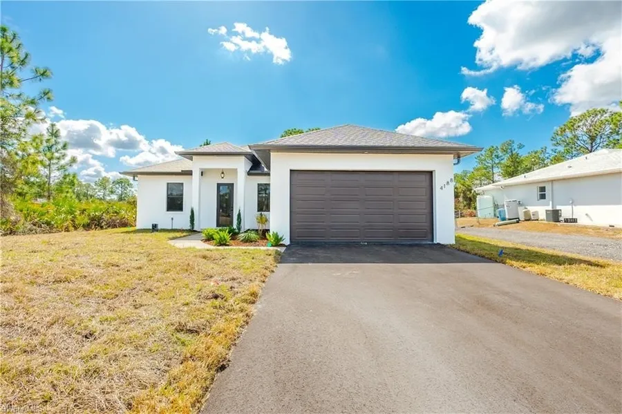 Discover this beautiful new construction home offering 3 spacious bedrooms, plus a versatile den, perfect for an office or bonus room. Featuring 2 modern bathrooms, an open-concept layout, and quality finishes that combines style, comfort, and value. The kitchen offers quartz counters in an attractive island configuration. The peaceful master bedroom includes a large and splendid bathroom with double sinks, and shower. In addition to the convenience of the private bathroom, you will find plenty of closet space and nice touches. The other two unique, quiet bedrooms are located above the ground floor for enhanced privacy. A brief driveway connects to an attached two-car garage, and the generous yard provides plenty of opportunity for enjoyment. This appealing home is perfectly situated in Naples' highly desirable Golden Gate Estates neighborhood. A perfect blend of quality and affordability, this home is ideal for families, first-time buyers, or anyone seeking a modern home, with a perfect location at a great price.