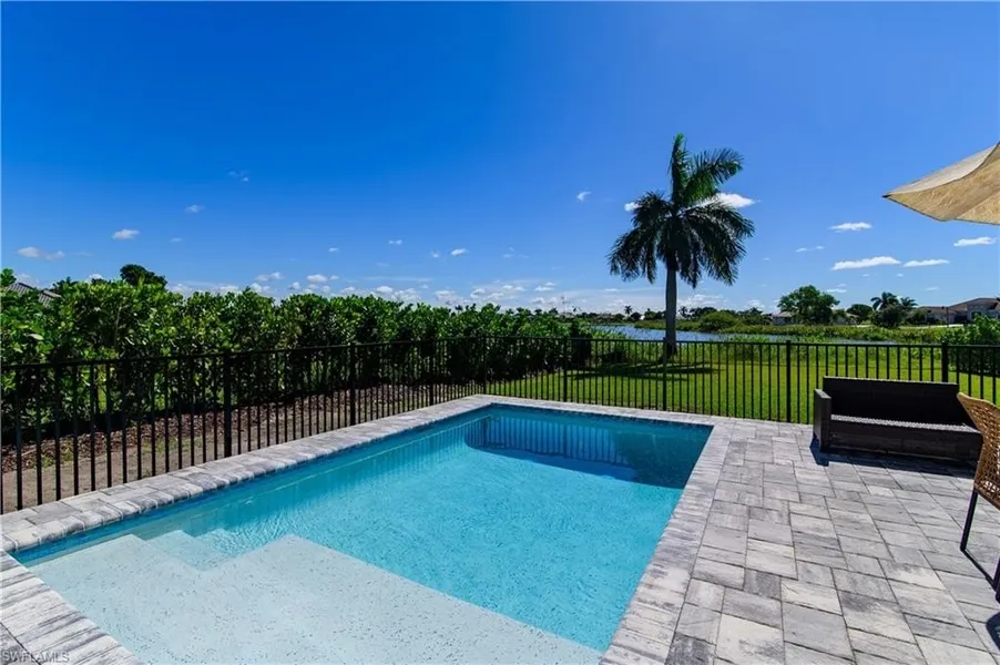 Welcome to your dream home in Royal Palm Golf Estates, a serene community featuring an 18-hole championship-level golf course. A BRAND-NEW POOL was just added, offering the perfect space to relax and entertain! This beautifully designed 4-bedroom, 3-bathroom home offers tranquil lake views and impeccable coastal Florida elegance. Step into the foyer and be greeted by an open-concept floor plan bathed in natural light. High-end finishes and thoughtful details abound, including 8” nickel gap paneling, custom LED lighting, and wood plantation shutters throughout. The chef’s kitchen is a true masterpiece, featuring floor-to-ceiling custom cabinetry with pull-out wood drawers, a built-in pantry, and a stunning Bentley quartz island. A beverage bar with a double-drawer beverage center and a custom-built dining area make this space perfect for entertaining. The home also includes a den with a seamless glass entry door, offering flexibility as a home office or additional living space. The master suite is a private retreat with two closets - one a walk-in with custom wood cabinetry and inserts - and a spa-like master bath with dual vanities and a walk-in shower. Additional highlights include an air-conditioned 2-car garage, hurricane-impact windows and doors, and elegant tile flooring throughout. Custom floating shelving adds a modern touch to the family and master bedrooms, while solid-core doors with exquisite hardware showcase the meticulous attention to detail in this home. Step out to your screened-in lanai, the perfect spot to enjoy your morning coffee as you take in the peaceful sunrise over the lake. The NEW beautiful pool is complete with a paver deck and a fence, creating the ultimate backyard oasis. Imagine relaxing in your private pool, enjoying the Florida sunshine in complete tranquility. Located in a quiet, serene community, this home offers the perfect balance of nature and convenience, just minutes from downtown Naples, beautiful beaches, and world-class amenities. Don’t miss this opportunity to live your Florida dream!