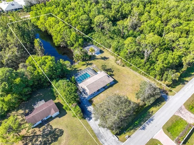 $35K+ PRICE REDUCTION! Situated on a 2.39 acre lot, this charming open floor plan ranch-style home is a must see! LOCATED WEST OF 75 and only 5 miles from 5th Avenue/downtown Naples. This wonderful single family home features 3 bedrooms/2 baths, a HUGE family room/kitchen/dining room, and a stunning west-facing view from the oversized screened lanai complete with an in-ground pool. HVAC is only 2 years old and the roof is 7 years old. As an added bonus, there is also a separate garage/structure on the property that can be converted to storage or a private sanctuary. The opportunities are endless. Have a boat or RV and looking for a place to store it? We've got you covered. Don't miss your opportunity to get your creative juices flowing and call this place "Home"!!!