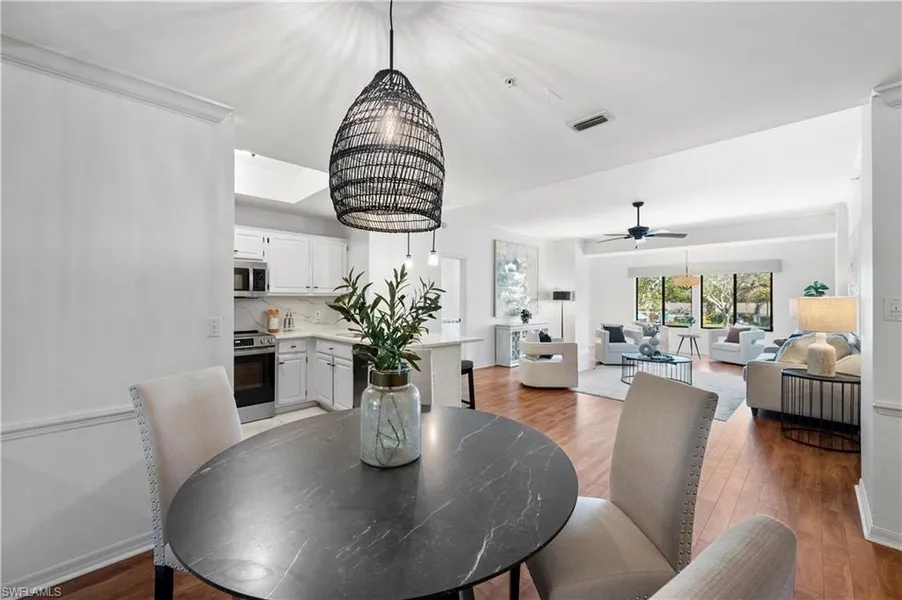 Step inside and you’ll notice how effortlessly style meets substance. The kitchen boasts brand new GE matching stainless steel appliances, fantastic quartz countertops with a slab backsplash and classic white cabinetry. Whether you’re whipping up an actual meal or arranging cheese and crackers with flair, this space is designed to make you look good doing it. The open concept layout flows into a sun-drenched living and ...