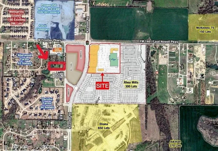 This is a high-income, affluent area (bordered by Mustang Lakes, Christie Farms and Amberwoods subdivisions) with a brand new elementary and middle school currently being constructed by the city of Prosper just a few lots away from the site.