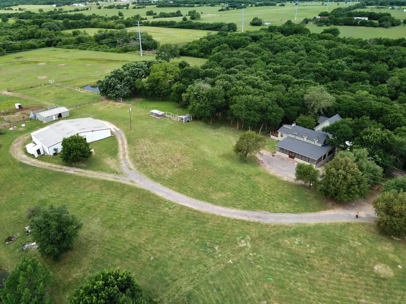 The Frye-N-Pan Ranch is 91.7 acres with a homesite offering 23 fenced acres of park-like grounds, including a 12 acre wooded game area with creek and game fencing. The accessory home is just outside the electric entry gate and sits on 7/10 of an acre. That home is a ranch style, 3 bedroom 1 bath pier & beam home and is currently income producing and used by the ranch foreman. It cannot be sold separately because of deed restriction of no less than 5 acres per owner.