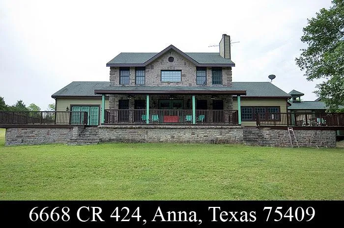 Peace and Serenity abound in this fabulous country home situated on 20 heavily wooded, rolling acres in Anna! Enjoy the country from your 1500+ sq. ft. wrap-around deck. This unique home boasts fabulous workmanship. The entire 1st level offers Pennsylvania stone floors with loads of wood built-ins and stone details throughout the entire home! Oversize 4 car garage. With over 3500 sq. ft. and only 15 minutes from Mckinney this home is a rare find.