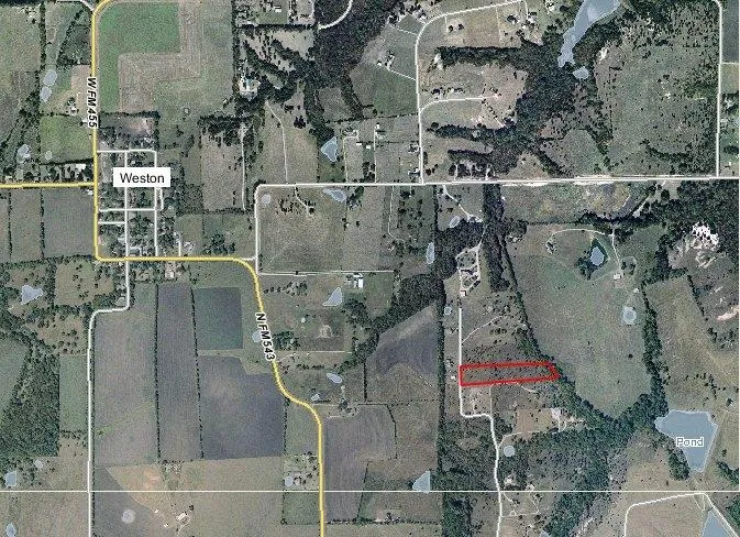 5 AC Homesite in Weston, TX Great country property with scattered trees and creek at the back boundry. Electricity, water and phone utilities to site. Septic system required. Currently zoned rural residential.