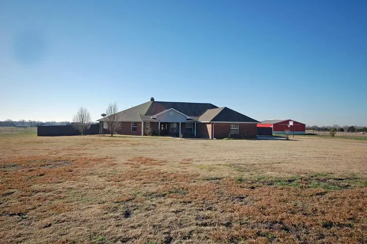 Country life at its bestwith 6 acres and no neighbors on either side, youll love the elbow room and beautiful views you get with this 4 Bedroom home. From the covered front porch, or the end-to-end covered patio in the backyard, youll enjoy expansive vistas and lots of privacy. Inside, youll find wood laminate flooring, lots of storage, updated lighting, and big picture windows in every room. The Formal Dining Room features elegant picture paneled wainscoting and a tall ceiling with a chandelier. Across the tile Foyer is the Study with double French doors, crown molding and chair railing. The spacious Living Room has a brick fireplace with wood mantle, an entertainment niche, double glass doors to the covered patio, and an eating bar shared by the Kitchen with a wine rack and ice maker. Youll love the open Kitchen with double ovens, a flat surface stove, abundant cabinets and counter space, and TWO pantries, as well as a Breakfast Area with a double tray ceiling, chandelier, glass doors to the patio, and a great view of the property. The Master Suite is split for privacy with another double tray ceiling and double glass doors to the patio, in addition to a large walk-in closet, and a private bathroom with a deep jetted tub surrounded by glass block, and a long double vanity. There are 3 additional spacious Bedrooms and a second full Bath, as well as a Powder Bathroom convenient to Living and Dining Areas. Outside is a huge fenced backyard and 6 acres of property, including a 36x40 Barn with 4 acres fenced pasture and easy to remove horse stalls. In addition to all this, youll love all the storage space, including a big Utility Room with cabinets, a sink and 2 closets, and an oversized 2-car Garage. Dont miss the ABOVE GROUND STORM SHELTER built into the Master closet with concrete construction - a safe haven from our Texas storms! Enjoy the newly installed above ground 24 ft swimming pool!