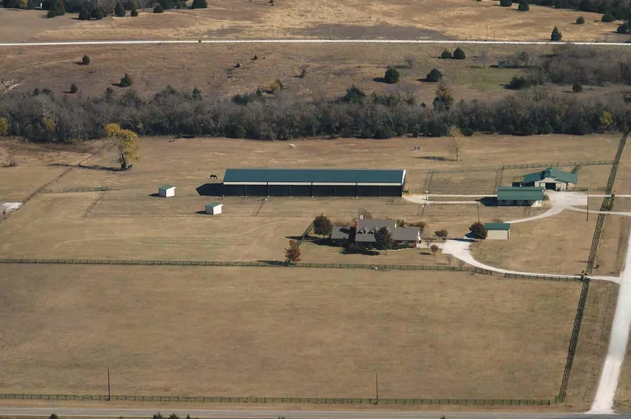 Located between Celina and McKinney, this 21+ acre equestrian property offers a custom home, horse barns, a covered arena, shop, turn out lots and several pastures.