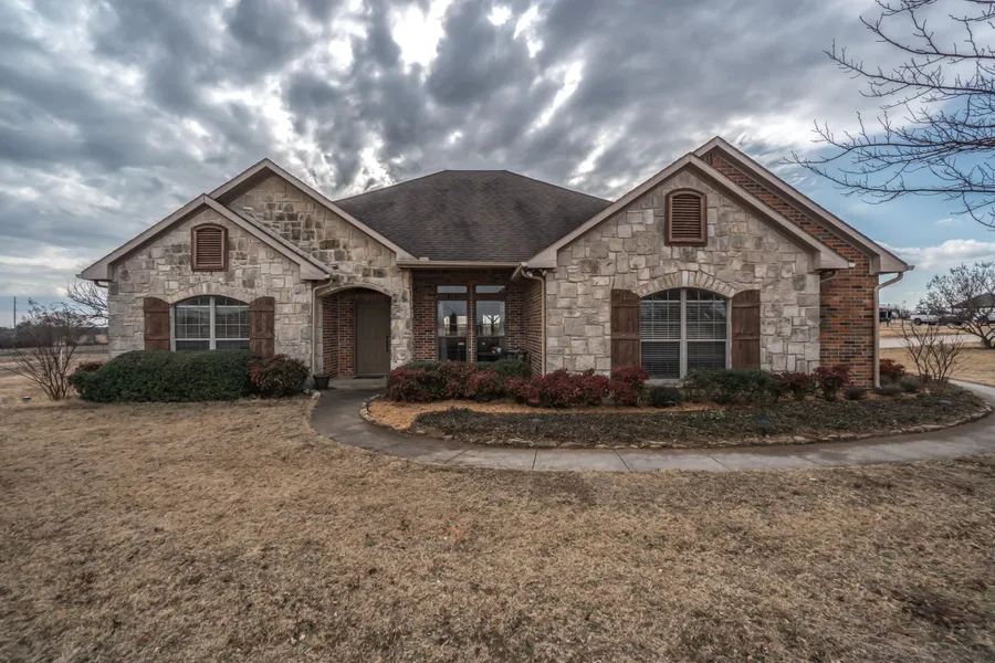 Welcome to Aces & Eights working ranchette in highly desired Celina ISD. 10+ acres situated in Celina ETJ near Celina HS. No city taxes. Fenced & cross-fenced. Cozy custom home is set back from road, gated entrance and full concrete drive. Design elements include stone fireplace, vaulted ceiling with beams, generous room sizes, and granite counters. Outdoor living includes pool and spa, kitchen & cooking cabana, rock fire pit, volleyball court and a large pool half bath that is also accessible from the garage. A 634SF guest home is situated between the home and shop. 30x40 shop with electric and sloped overhang for feeding, dry hay storage. Seasonal stock tank on back of property may be included with additional acreage. Current agricultural exemption in place. Additional acreage available up to 22 acres. Guest home is not included in SF or room data on listing. Guest includes kitchenette...