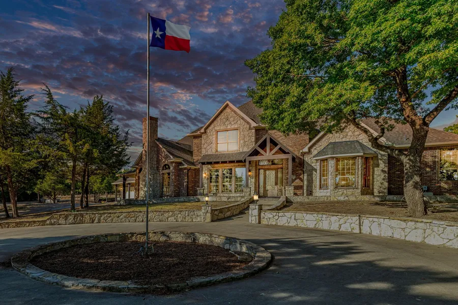 The immaculate custom home sits majestically at the end of a treelined gated circular drive complete with a patriotic flagpole and stone-lined entry to the front door. The traditional Texas home showcases an impressive Great Room with 2 story stone fireplace, custom cabinetry, and incredible views of the sweeping outdoors. The space is open to ...