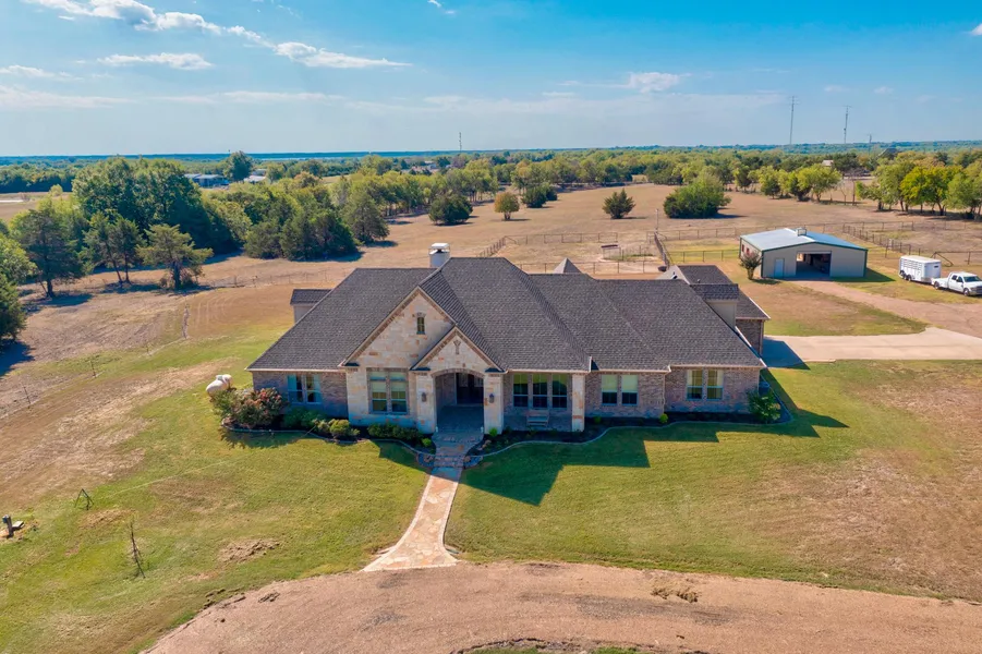 Gorgeous custom built estate sitting on 23(+or-) acres, fenced with gated entrance, pond, trees, 36x40 6 stall barn and tack room, separate paddocks, large 36x60 workshop with concrete floors, heated swimming pool and hot tub. Spacious home with 3466 sq ft with additional approx 1100 unfinished upstairs that can be completed as new owners want. Media room with 110in projection screen, with bar, smart home features. Kitchen open to living room, oversized island, perfect for entertaining, custom cabinets, granite, great views! Oversized back patio, outside shower and private bath to enjoy while in the pool area. Master suite has great views, sitting area, recessed ceiling, real hardwood floors though-out. This is a must see! Bring your horses, farm animals and enjoy the country life.