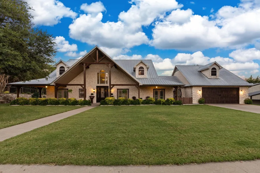 Welcome home to your next luxury oasis! This beautifully manicured 9+ acre property features an open concept 4,834 sqft home, 2,400 sqft shop complete with an 800 sqft apartment, as well as an additional 10,000 sq ft. shop that includes a 2,000 sqft game room of your dreams. The 7-bedroom, 4.5-bathroom Austin stone home is privately tucked away among towering pecan trees at the end of the concrete driveway. This home is an entertainers dream and is sure to impress with its hand-scrapped hardwood floors, custom cabinetry, and extensive stonework through-out. Step out on the back patio or pergola where you can enjoy your morning coffee while overlooking the saltwater pool which features a rock waterfall and slide! There is much more to see and experience than can be described on this property and it wont disappoint. Dont miss your chance to enjoy quiet country living while being less than 30 minutes from Dallas.