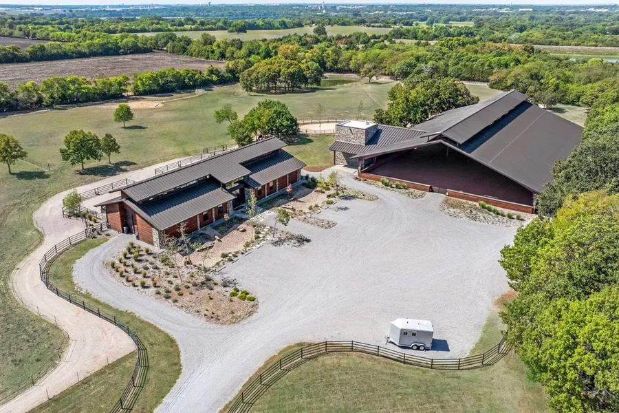 Unrivaled improvements abound on this 40 +- acres only minutes from downtown McKinney, Hwy 380, and McKinney international Airport. Recent construction with impeccable quality and ample horse facilities affords an opportunity to recreate with friends and family or the potential for business operations. 160'X200' arena with adjacent apartment offers elevated soft contemporary design language with a nod to the modern West. It is sophisticated elegance with an industrial edge and a luxurious mix of materials: leathered granite, custom fireplace and spiral staircase, European oak wood floors, beech wood, custom milled beechwood cabinetry, and auto-shades on commercial windows. The architecturally designed show barn mirrors the unexpected elegance with clean lines balanced against a rustic touch. Up to eight stalls with turnouts, two wash bays, rubber flooring, tack room, commercial bathroom, and full kitchen amenities ensure the facility can handle any occasion. The paddock paradise track system is a unique feature to ensure hoof health and promote natural grazing for improved digestion for the owner's animals. Full perimeter fencing, gated entry, pipe fence, and horse appropriate systems allow for privacy and controlled access. Stock pond, wooded terrain, homesite locations, and reservoir frontage round out the offering. While on property, enjoy over two miles of horse trails and view the additional nine available acres.