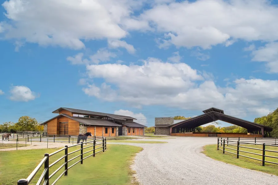 Unrivaled improvements abound on this 49 +- acres only minutes from downtown McKinney, Hwy 380, and McKinney international Airport. Situated on a paved road with a hard corner and 1000'+ of road frontage, the recent construction showcases impeccable quality and ample horse facilities affords an opportunity to recreate with friends and family or the potential for business operations. 160'X200' arena with adjacent apartment offers elevated soft contemporary design language with a nod to the modern West. It is sophisticated elegance with an industrial edge and a luxurious mix of materials: leathered granite, custom fireplace and spiral staircase, European oak wood floors, beech wood, custom milled beechwood cabinetry, and auto-shades on commercial windows. The architecturally designed show barn mirrors the unexpected elegance with clean lines balanced against a rustic touch. Up to eight stalls with turnouts, two wash bays, rubber flooring, tack room, commercial bathroom, and full kitchen amenities ensure the facility can handle any occasion. The paddock paradise track system is a unique feature to ensure hoof health and promote natural grazing for improved digestion for the owner's animals. Full perimeter fencing, gated entry, pipe fence, and horse appropriate systems allow for privacy and controlled access. Stock pond, wooded terrain, homesite locations, and reservoir frontage round out the offering.