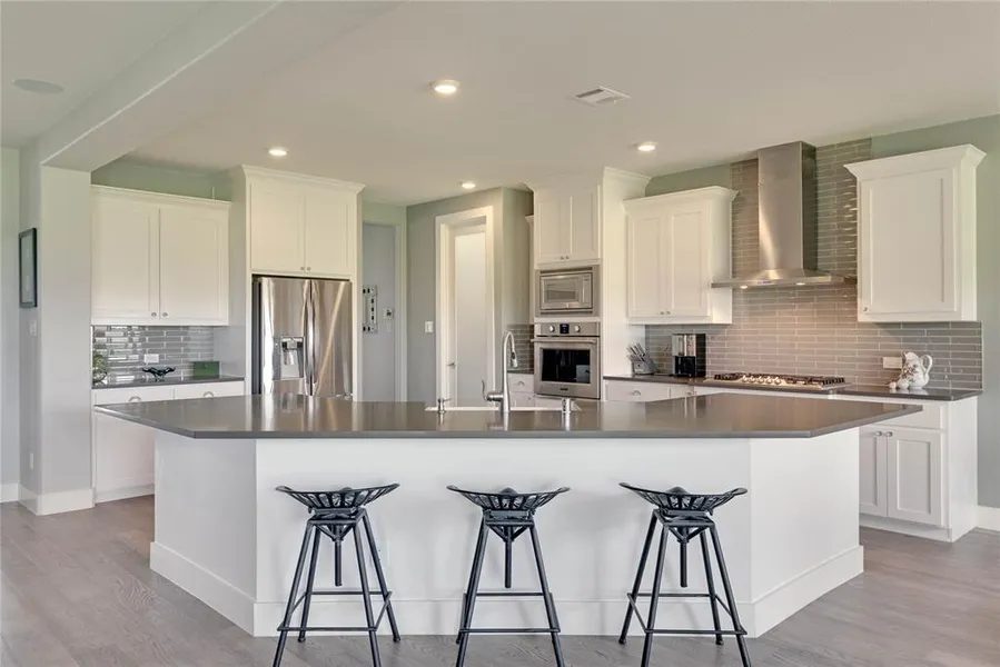 MOTIVATED SELLER! Beautiful Texas Modern Home. 100K in upgrades permeate this light & bright home featuring: Kentwood Brushed Oak Ragstone Gray hardwoods, French doors - opaque glass - solid brass nickel, 6-in baseboards, lifetime LEDs, PH balanced Halo V water filtration, built-in surround sound. Kitchen boasts 42-in shaker cabinets, glass backsplash, quartz, upgraded appliances. Live edge Texas mantle. Large master, en-suite bath. spacious walk-ins, marble, frameless. Covered dog run, turf, dog doors. Covered back patio, enclosed blinds, epoxy-covered floor, & gas line. 1-acre lot sodded, back-filled, 22-station sprinkler, maple trees, extra-wide driveway, faraday cage, ring doorbell, flood cams, 3-car